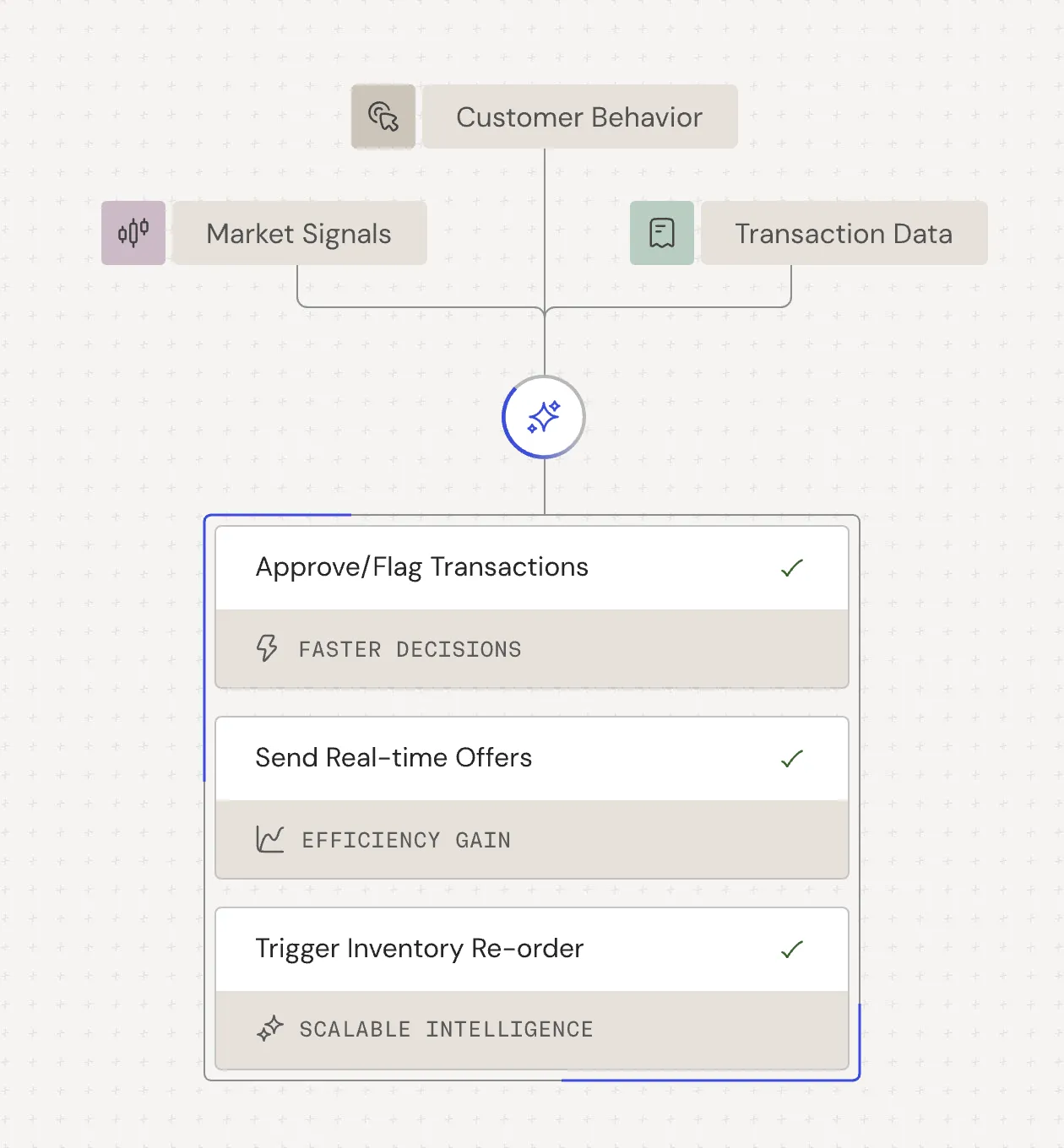 We build models that automate business decisions, trigger actions from data, and optimize processes across your organization.